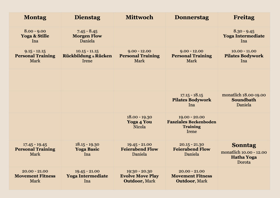 Bitte melde Dich für alle Kurse zuerst beim Kursleiter an, vielen Dank.